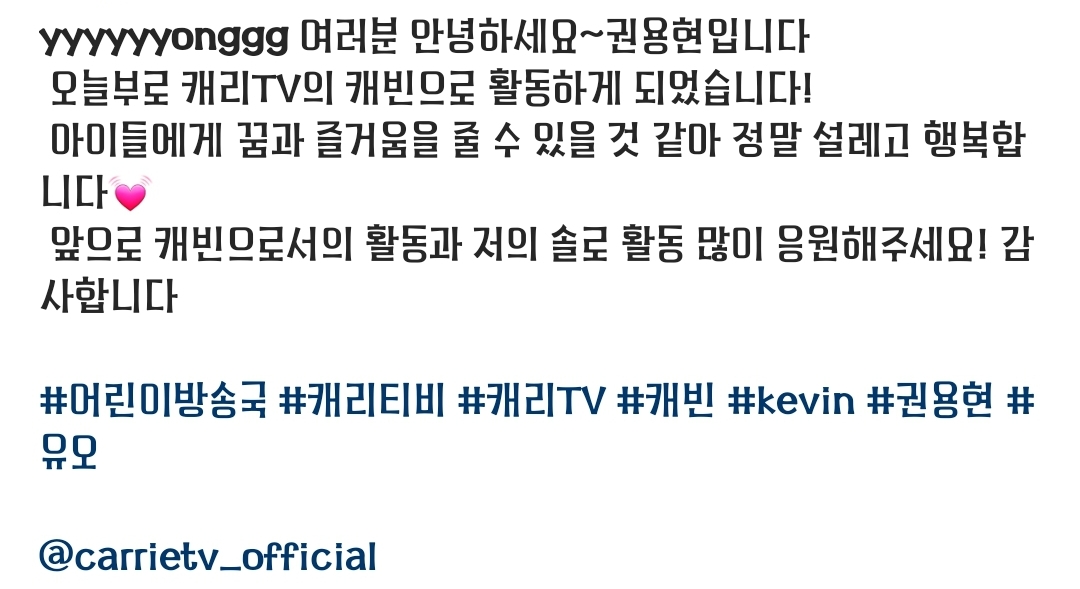 2022.06.11, 본인의 sns계정에 4대 캐빈으로의 출발을 알린 권용현. 서포터즈 10기 쇼케이스에서 봤을 때는 너무 잘생겨서 놀랐음(조각미남). 최근에는 토미와 '우당탕탕 놀이교실'에 출연중.