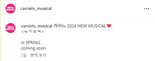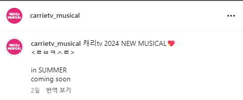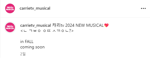 캐리tv에서 새로운 sns 계정을 만듬. 그 계정은 바로 캐리tv 뮤지컬!