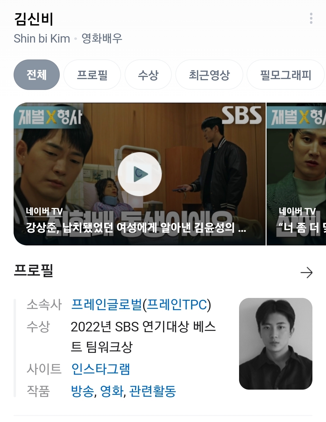 김신비는 안보현 x 박지현의 sbs 드라마 '재벌x형사'에서 막내형사 최경진 역을 열연 중인 것을 알 수 있음.