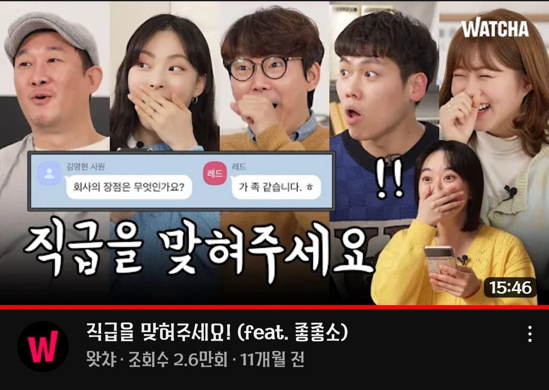 엘리가 되기전 왓챠 '직급을 맞혀주세요!(feat. 좋좋소)' 에 출연한 엘리 김명현. 한번 같이 보겠음.